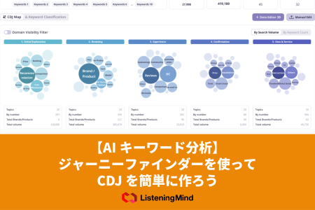 一つの関心から、消費者がどのように検索を深めていくのかを可視化。検索行動のプロセスをたどることで、購買や意思決定に至る流れや背景を読み解くことができます。