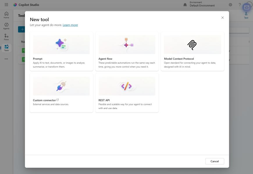 - Tools → Add tool → Model Context Protocol
