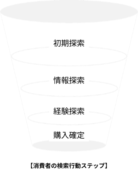 消費者が商品を購入するまでの検索行動は、大きく4つのステップに分けて考えることができます。