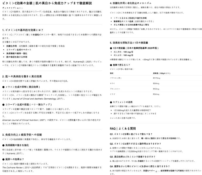 「ビタミンC 効果」を上位コンテンツ機能で自動分析