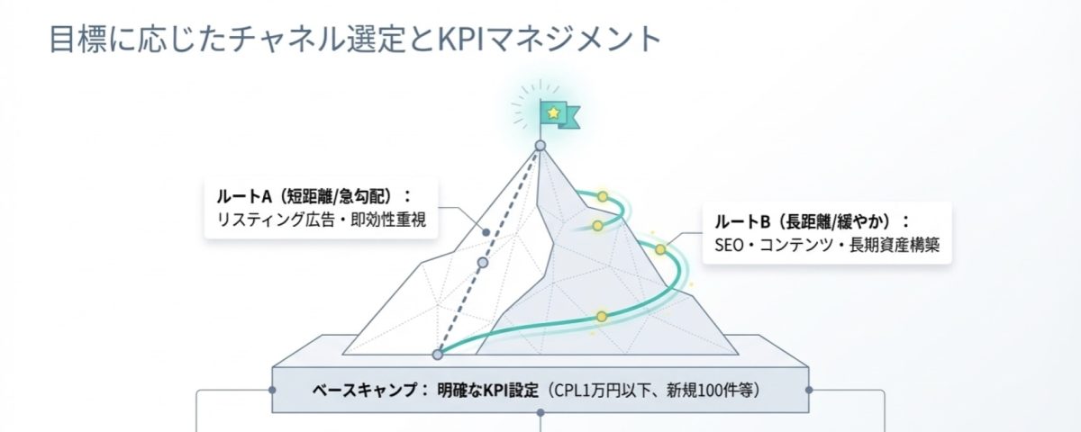 - 長期的な資産構築が目的の場合: SEO・コンテンツマーケティングを中心に展開