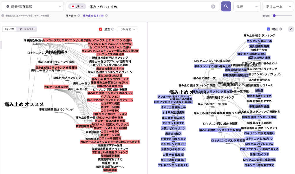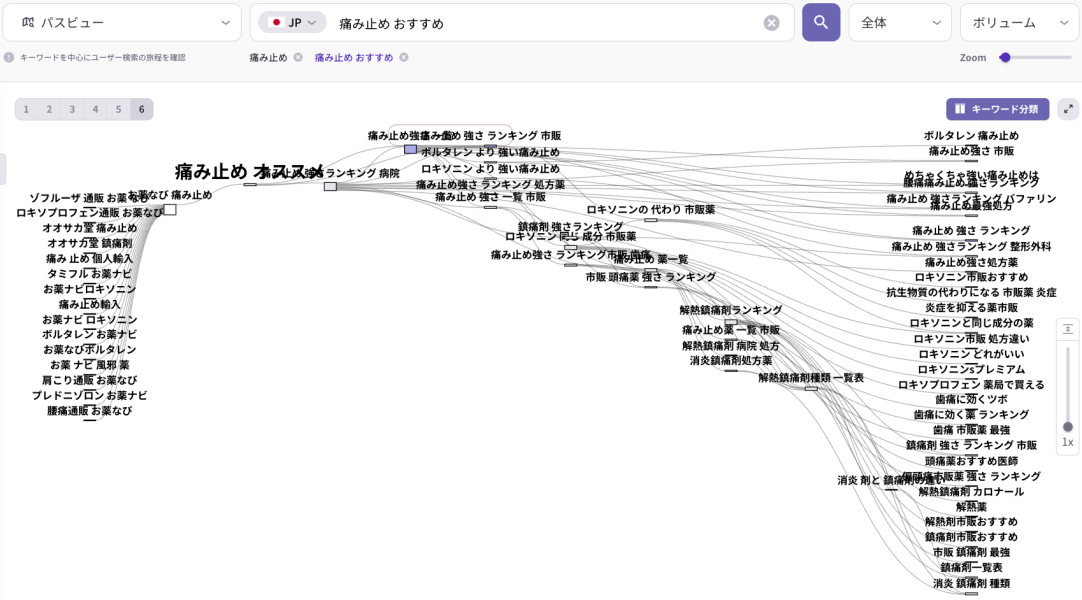 チャネル選定では、自社の都合や慣習で優先順位を決めるのではなく、消費者がどの接点から情報収集を始め、どの検索テーマで比較・検討を深めているかを踏まえて判断することが重要です。<パスファインダーの機能紹介>