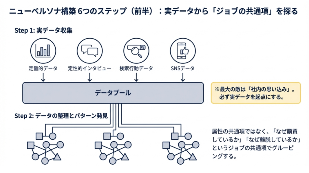 精度の高いペルソナを作るには、思い込みではなく実データに基づいたプロセスが必要です。