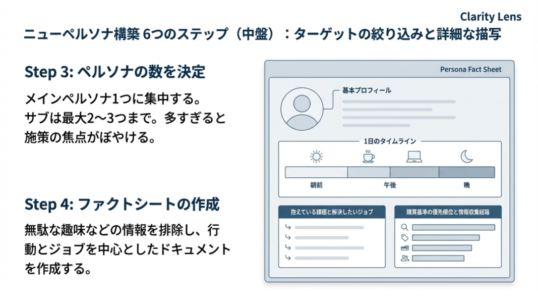 リソースが限られる場合は、まずメインペルソナ1つに集中することを推奨します。