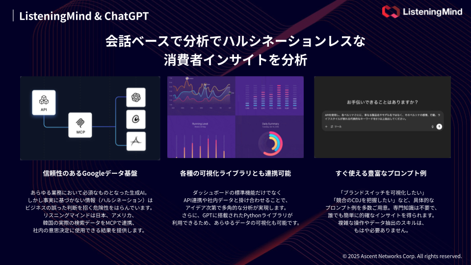 ChatGPTと自社データを組み合わせた分析手法により、数値だけでは見えない「文脈を理解した分析」を体感いただけます。